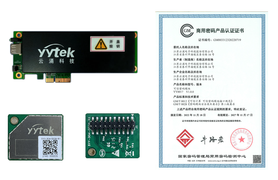 YY0017可信密碼模塊基于可信計(jì)算核心思想和基本架構(gòu),依據(jù)等級(jí)保護(hù)2.0要求,采用國(guó)芯安全芯片,是可信計(jì)算密碼支撐平臺(tái)必備的關(guān)鍵基礎(chǔ)部件,作為硬件和固件的集合,可以為整個(gè)可信計(jì)算提供獨(dú)立的密碼算法支撐,支持SM1/ SM2/SM3/SM4等國(guó)密算法,符合國(guó)密認(rèn)證標(biāo)準(zhǔn),已取得GM/T 0012可信密碼模塊證書。