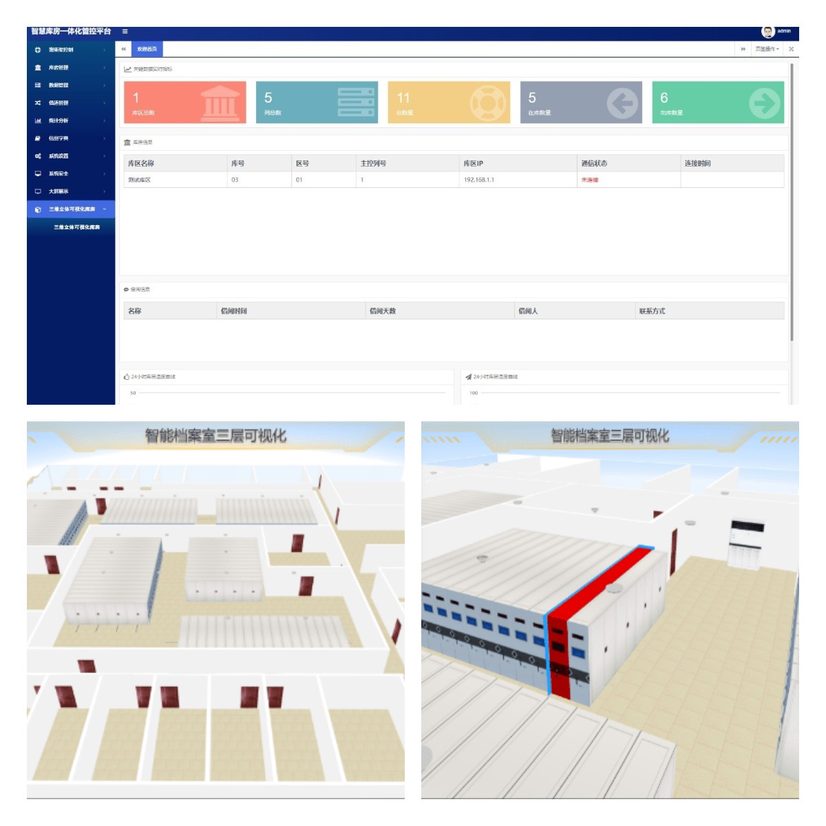 - 通過三維數(shù)字化庫房,可實現(xiàn)業(yè)務(wù)數(shù)據(jù)查詢,遠(yuǎn)程檔案設(shè)備操作,全景環(huán)控系統(tǒng)設(shè)置,安全態(tài)勢感知上報等功能,助力用戶數(shù)字化轉(zhuǎn)型。