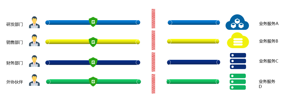 1、本公司員工與外部合作單位的員工需要組網遠程協(xié)作,出于安全考慮又不能讓外部員工遠程接入本公司的內部網絡,如何能保證協(xié)作業(yè)務的微邊界隔離訪問?