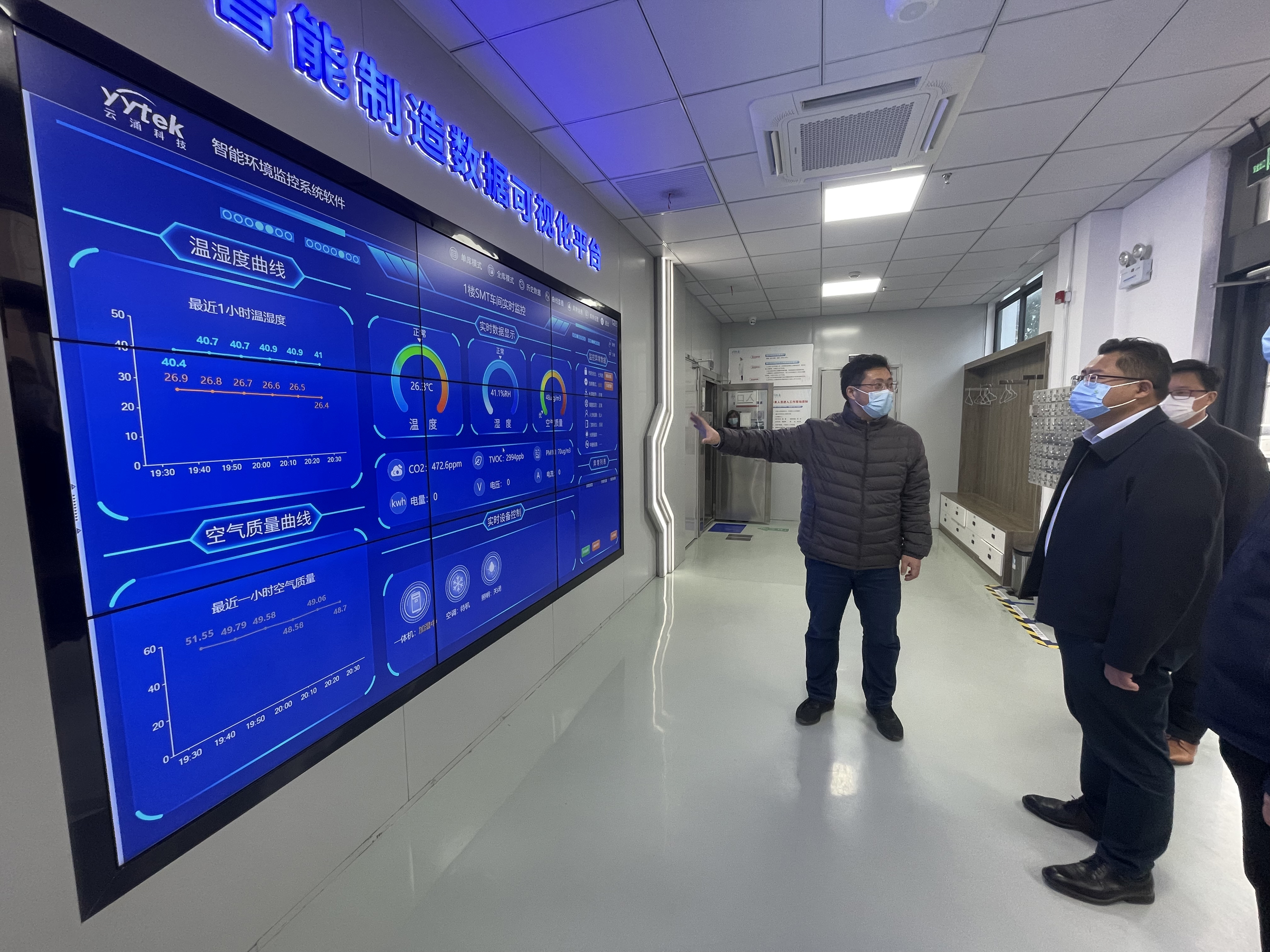 最后在智能生產(chǎn)車間的參觀過(guò)程中,姜總向劉處長(zhǎng)一行展示了公司正主研發(fā)的生產(chǎn)執(zhí)行MES系統(tǒng)、物料倉(cāng)儲(chǔ)WMS系統(tǒng)、智能環(huán)境控制系統(tǒng)等,以實(shí)際應(yīng)用場(chǎng)景,介紹公司在科技創(chuàng)新、智轉(zhuǎn)數(shù)改過(guò)程中,工廠如何應(yīng)用數(shù)據(jù)分析對(duì)生產(chǎn)流程、設(shè)備狀態(tài)和質(zhì)量數(shù)據(jù)等信息進(jìn)行數(shù)字化管理,從而實(shí)現(xiàn)全生產(chǎn)周期的遠(yuǎn)程監(jiān)控、事故預(yù)警以及效率優(yōu)化。