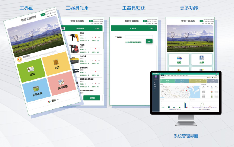 智能工器具管理系統(tǒng)是針對供電所普通工器具和安全類工器具管理的一整套解決方案。根據(jù)存儲工具的環(huán)境要求不同,設置不同的存儲柜和管理方式。系統(tǒng)采用RFID標簽對工具進行識別和管理,通過智能工具柜的標簽識別和智能控制,完成工具使用過程中的自助借還、領用引導、錯誤提醒以及自動盤點等功能。