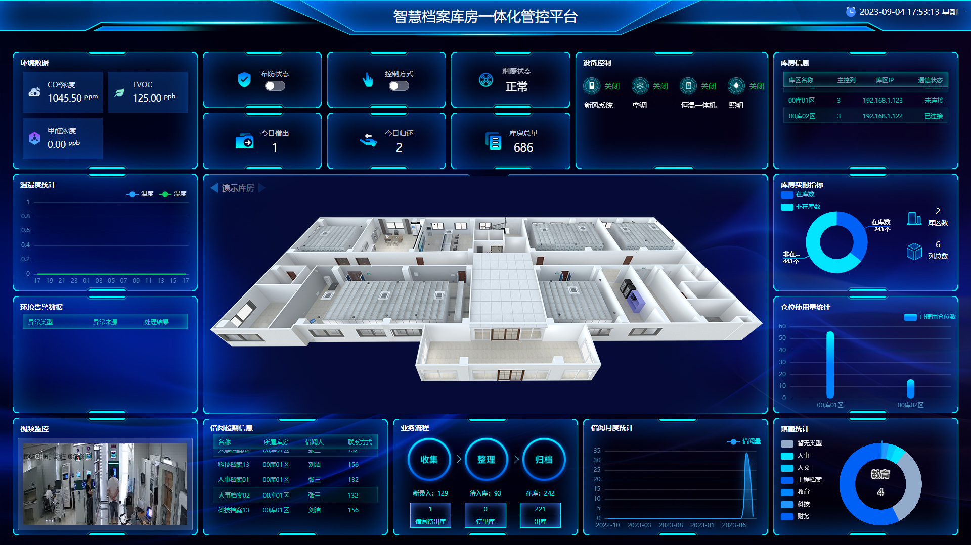 智慧檔案庫房一體化管控平臺建設方案由實體檔案管理、檔案存儲設備管理、檔案庫房環(huán)境管理、檔案庫房安全防范管理等多種管理方式組成。不僅保障了檔案管理的規(guī)范化、智能化,還為檔案館的環(huán)境和安防提供了改善和管理途徑。使傳統(tǒng)的檔案管理朝著網絡化管理方向發(fā)展,打破了層級、部門之間的限制,促使檔案管理人員和職能部門進行協(xié)調互通,使檔案管理的程序和操作流程更加簡明、暢通。